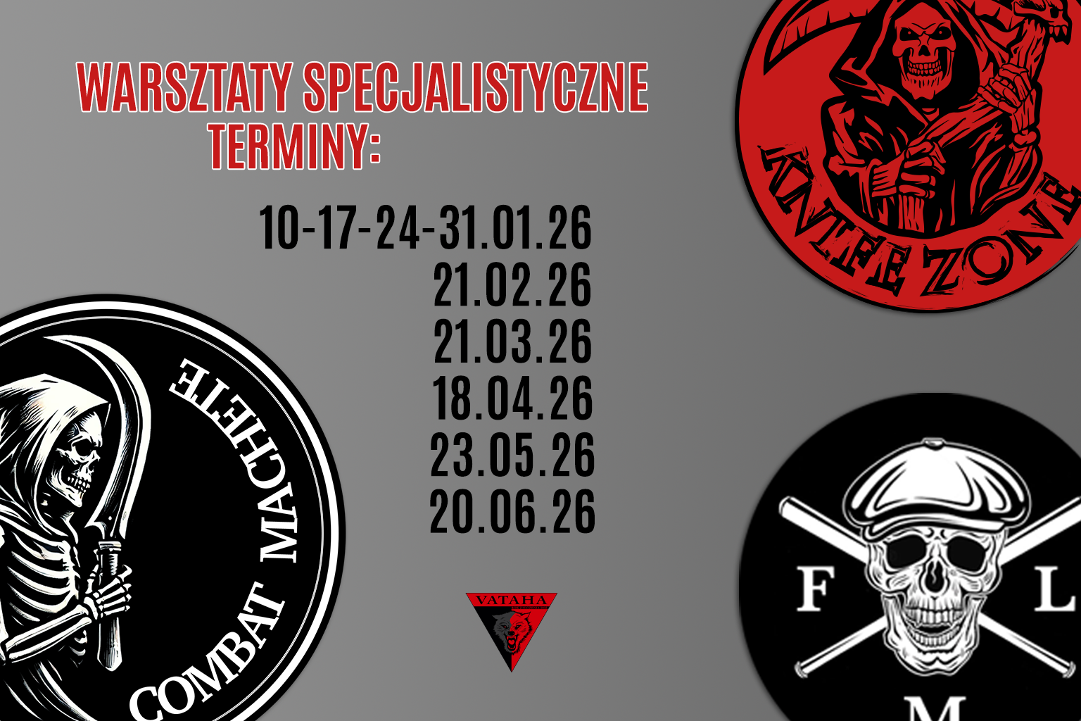 📅 Terminarz szkoleń specjalistycznych 2026 – zarezerwuj w swoim kalendarzu już teraz! Ogłaszamy harmonogram warsztatów na rok 2026! Przed nami intensywne szkolenia specjalistyczne z zakresu: Knife Zone, Combat Machete oraz Combat Baton. Daty warsztatów: ➡️ 10-17-24-31.01.2026 – Combat Baton ➡️ 21.02.2026 ➡️ 21.03.2026 ➡️ 18.04.2026 ➡️ 23.05.2026 ➡️ 20.06.2026 Jeśli chcesz rozwijać swoje umiejętności, pracować nad techniką i zdobywać praktyczną …